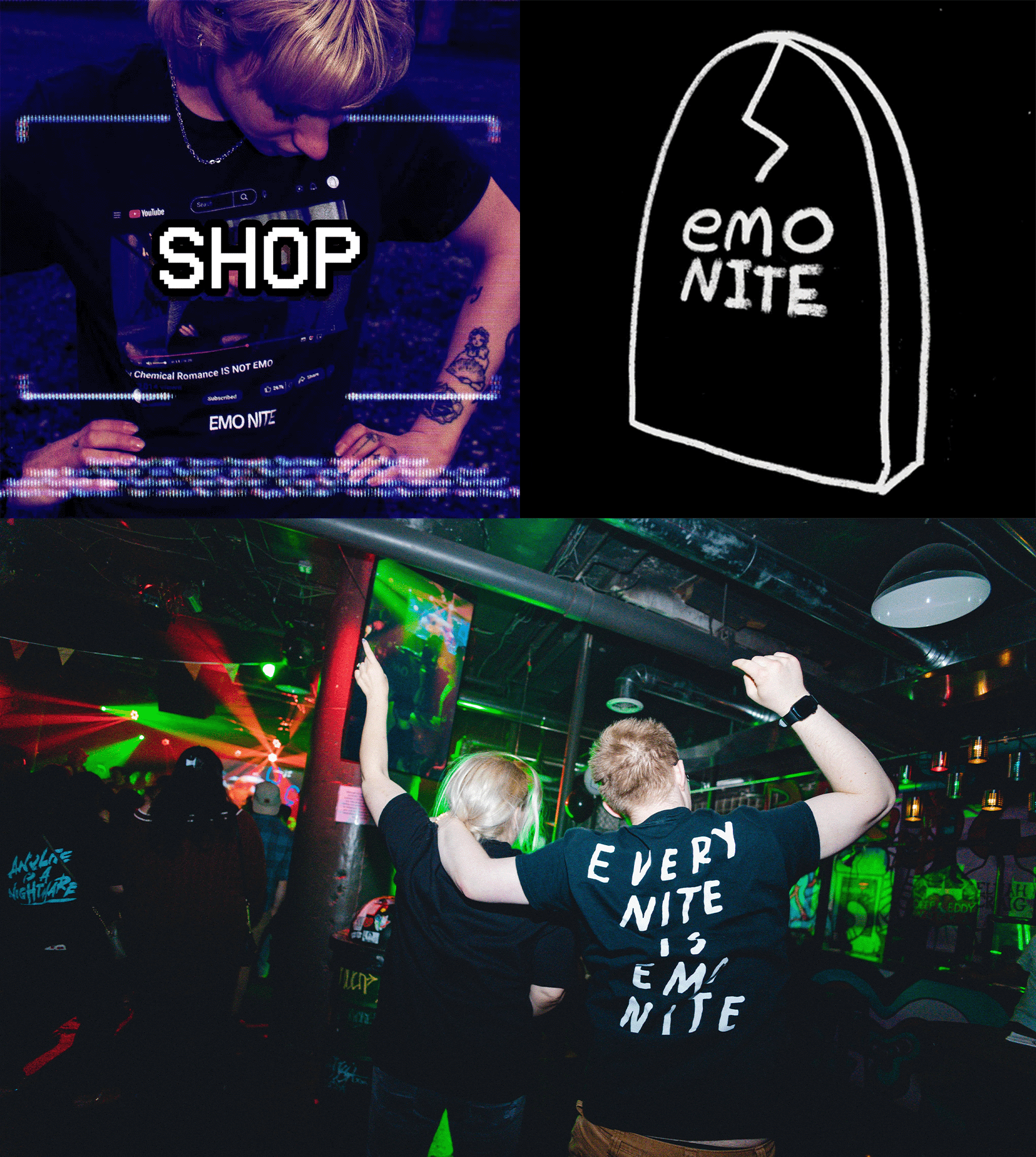 I was inspired by Emo Nite, a similar traveling party brand that appeals to emo and alternative culture. I wanted to translate that concept into something appropriate for and appealing to Y2K trends and nostalgia. The early 2000s aesthetic is making a strong comeback, and I wanted to explore how that energy could translate into a real-world event brand.